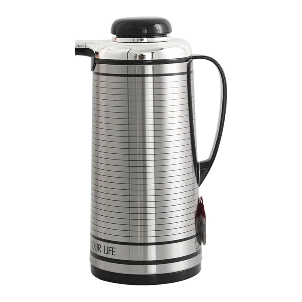 يتميز بغطاء محكم الإغلاق يعمل بلمسة واحدة لتسهيل الاستخدام اليومي، مع مقبض مريح يتيح صب المشروبات بثبات وسلاسة.