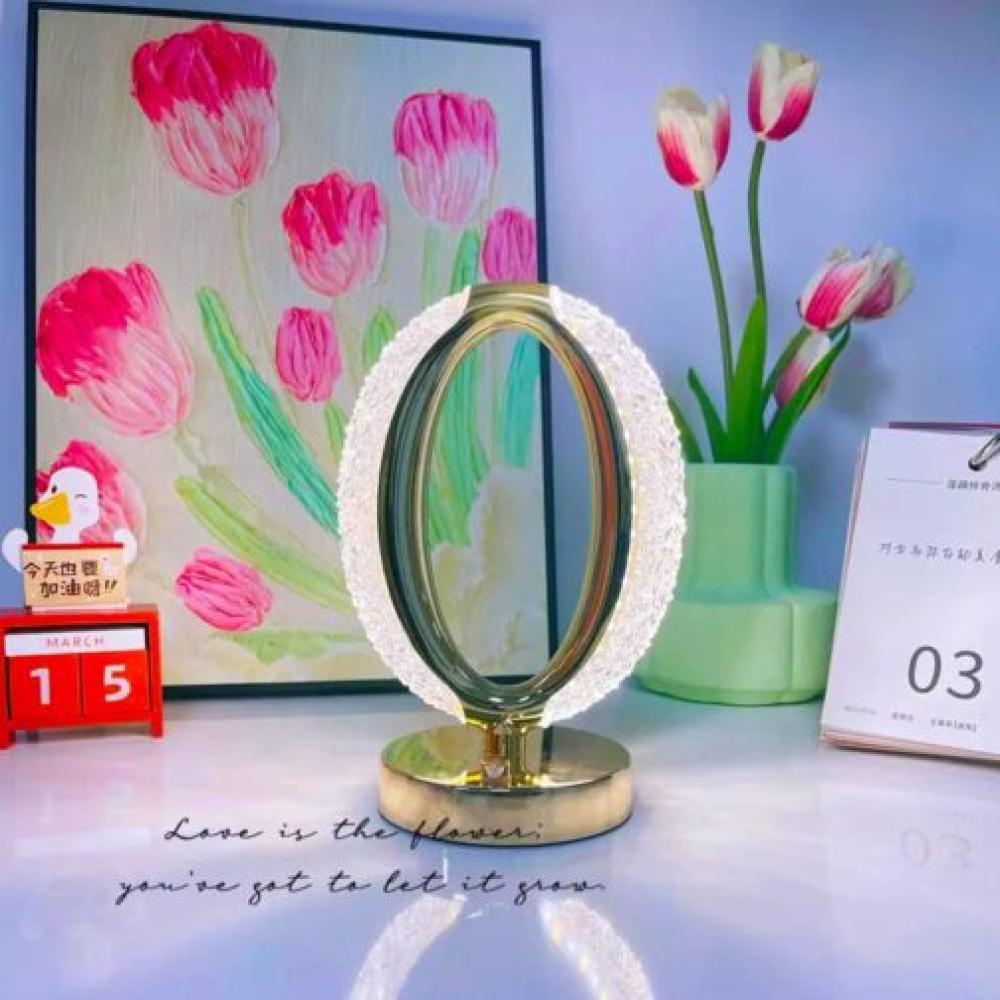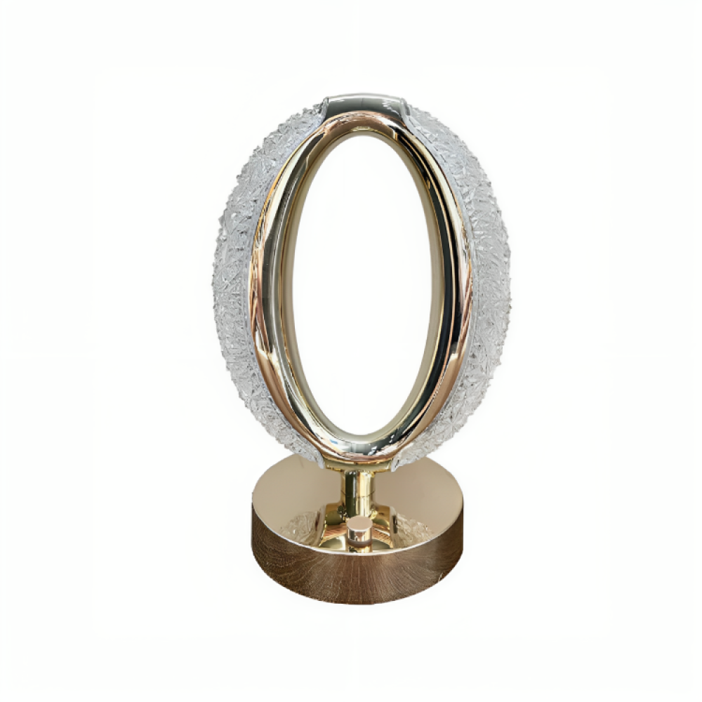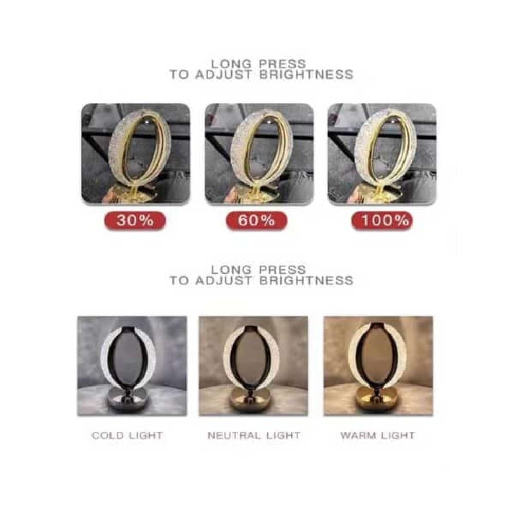 مصباح طاولة بتصميم عصري يتوهَّج بإضاءة ناعمة تخلق جوًا مريحًا للعين ويمنح طابعًا يوحي بالأناقة والفخامة ببريق ضوئي ثلاثي الأبعاد يُحاكي بريق البلّورة Crystal Light.