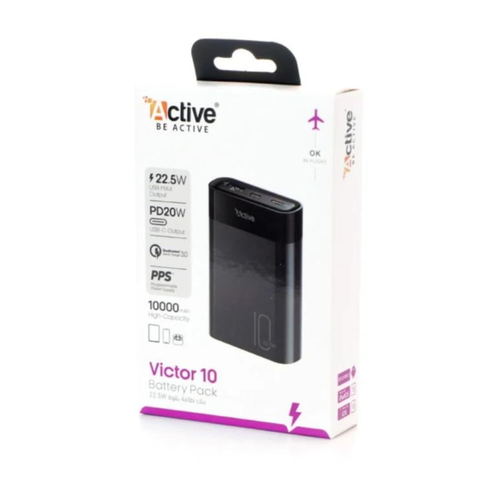 بطارية متنقلة Victor 10 من Active بسعة 10,000 ملي أمبير وقدرة شحن 22.5 واط، تمنحك أداءً قويًا وسريعًا لشحن أجهزتك في أي وقت وأي مكان. تصميم أنيق وخفيف يجعلها مثالية للاستخدام اليومي والسفر.