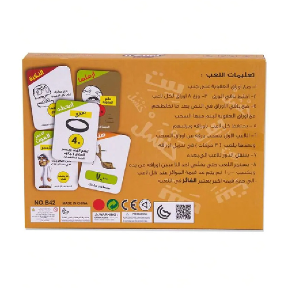 لعبة بطاقات جماعية مليئة بالحماس والتحديات، تعتمد على الذكاء والتخطيط والمخاطرة، حيث يتنافس اللاعبون لجمع الجوائز وتجنّب العقوبات في جو مليء بالضحك والتفاعل!