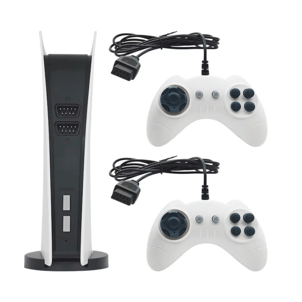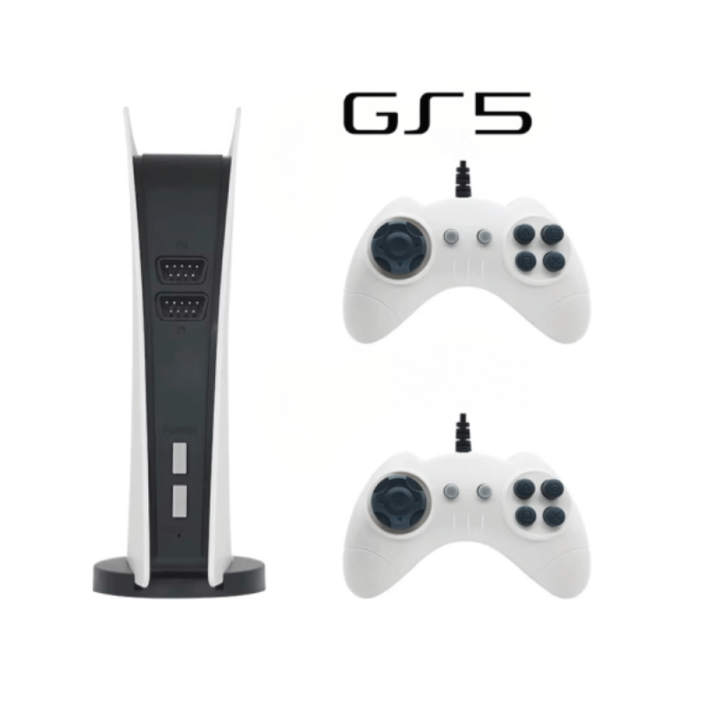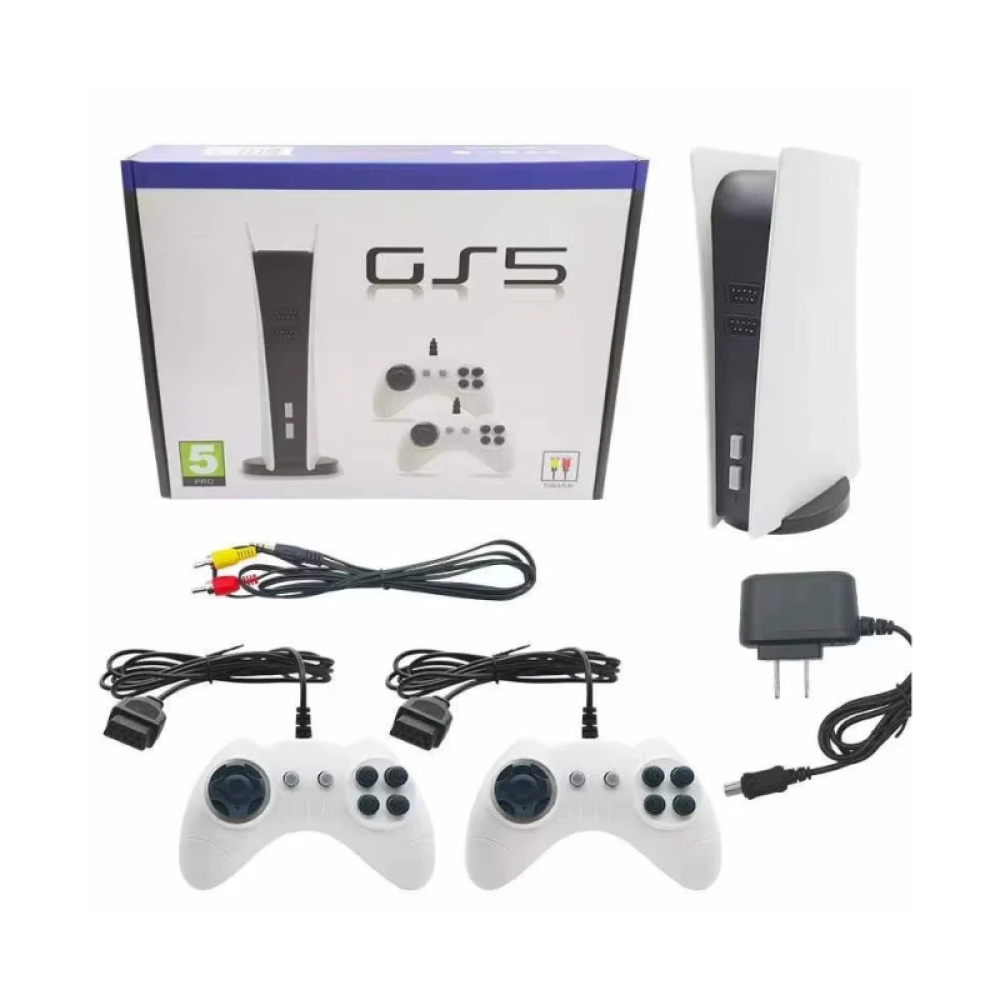 جهاز ألعاب منزلي يدعم التوصيل والتشغيل الفوري، مزود بيدين تحكم لسهولة اللعب مع الأصدقاء. تصميم عصري يناسب جميع أفراد العائلة ويمنحك تجربة ألعاب ممتعة.