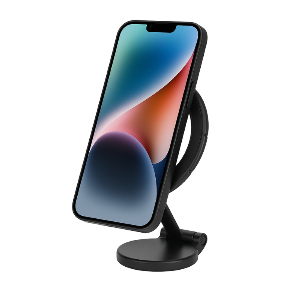 • دوران 360 درجة: يمكن تدوير الحامل بشكل كامل لتحقيق زاوية مشاهدة مثالية، سواء كان الجهاز بالعرض أو بالطول.