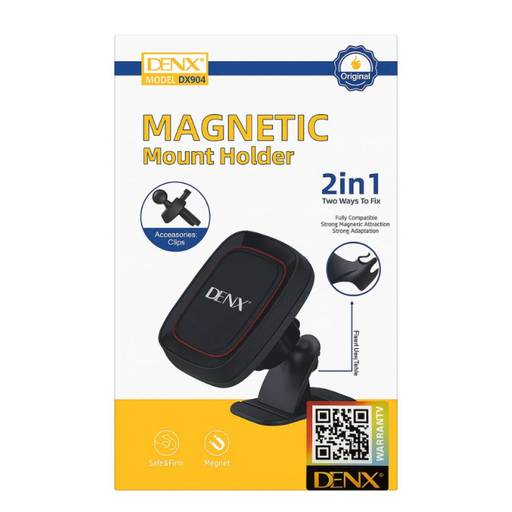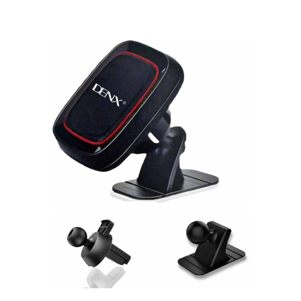 حامل جوال مغناطيسي للسيارة من DENX بتصميم 2 في 1، يمكن تركيبه على فتحات التكييف أو على الطبلون. يوفر تثبيت قوي وآمن للجوال أثناء القيادة مع إمكانية الدوران والضبط بسهولة.