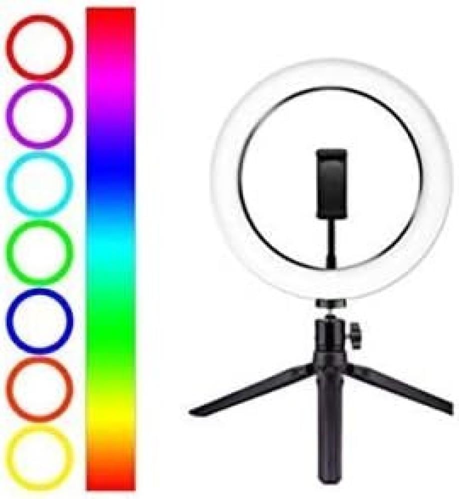 حلقة إضاءة متعددة الألوان RGB مع حامل للجوال، مثالية للبث المباشر، تصوير الفيديو، والمكياج. تصميم عصري وسهل الاستخدام يوفر إضاءة محيطية متغيرة تضيف لمسة احترافية للمحتوى.