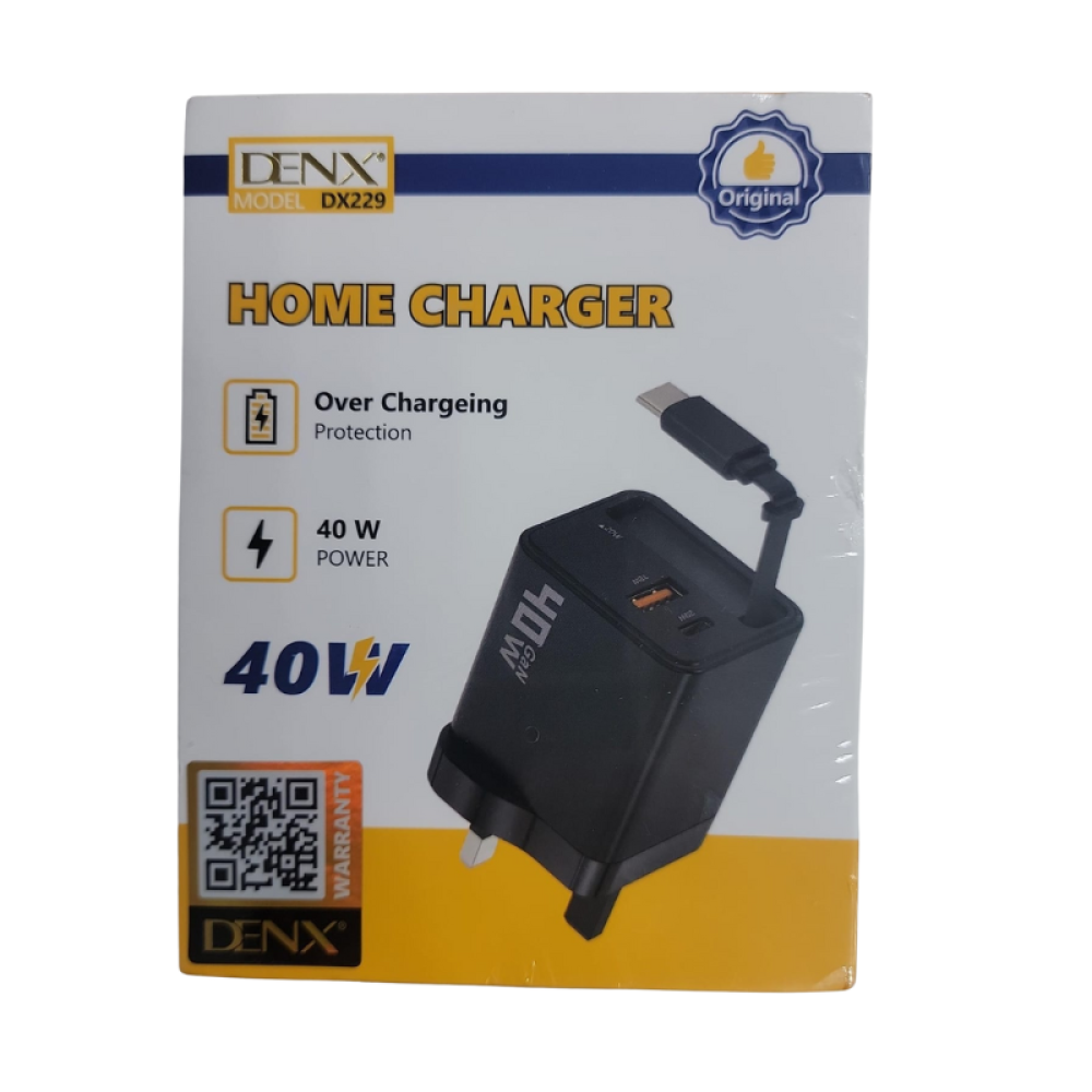 شاحن منزلي ذكي من DENX بقدرة 40 واط مع كيبل تايب سي مدمج، يوفر لك شحن سريع وآمن لمختلف الأجهزة الذكية. يتميز بحماية متقدمة ضد الشحن الزائد ويدعم شحن الهواتف والأجهزة اللوحية وأغلب أجهزة Type-C بكفاءة عالية. تصميم مدمج ومتين يناسب الاستخدام اليومي في المنزل أو المكتب. الخيار المثالي لمحبي التقنية والباحثين عن شحن سريع وموثوق مع تجربة تسوق حديثة من اورجن.