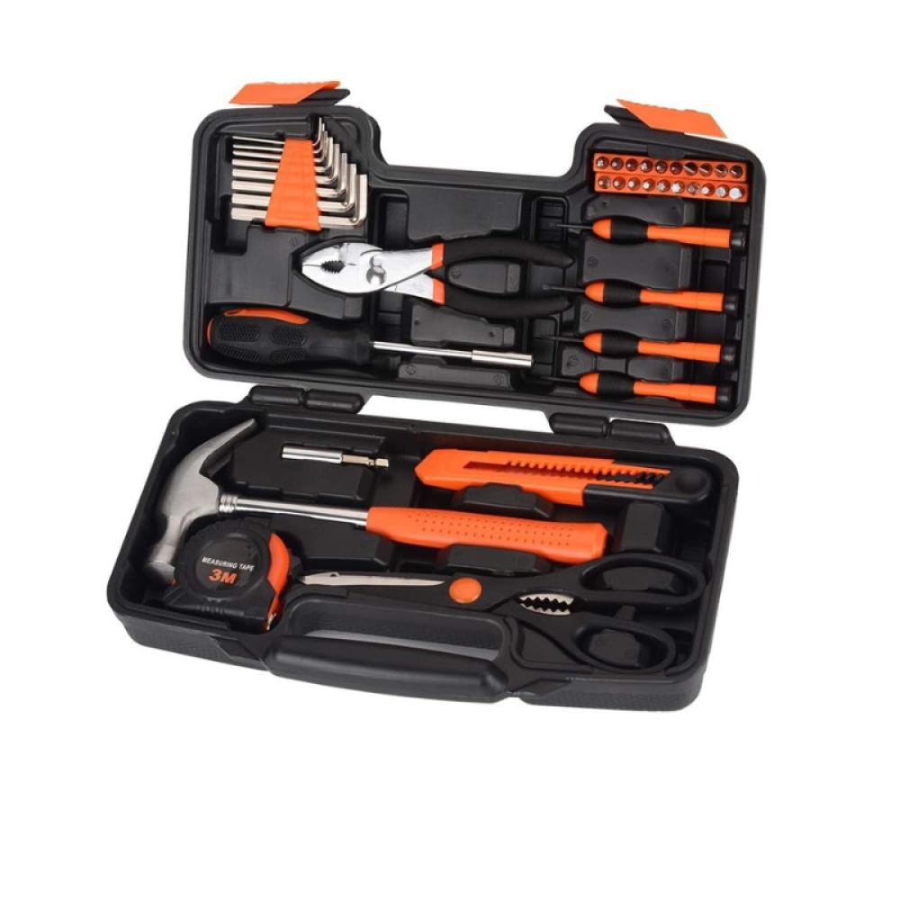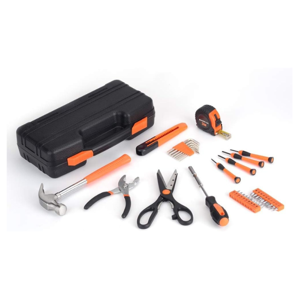 • يحتوي على مفكات، كماشة، مطرقة، شريط قياس وأدوات متعددة