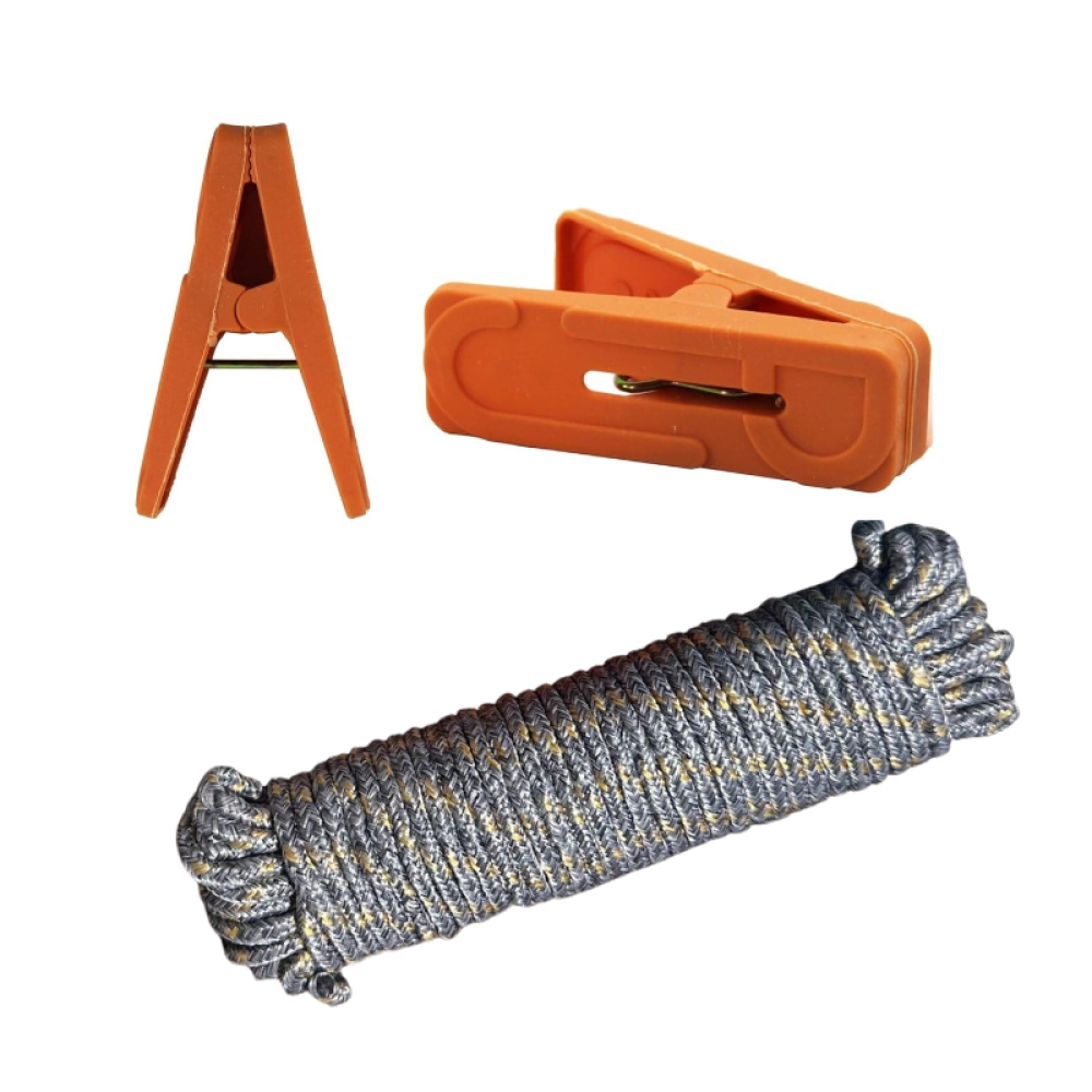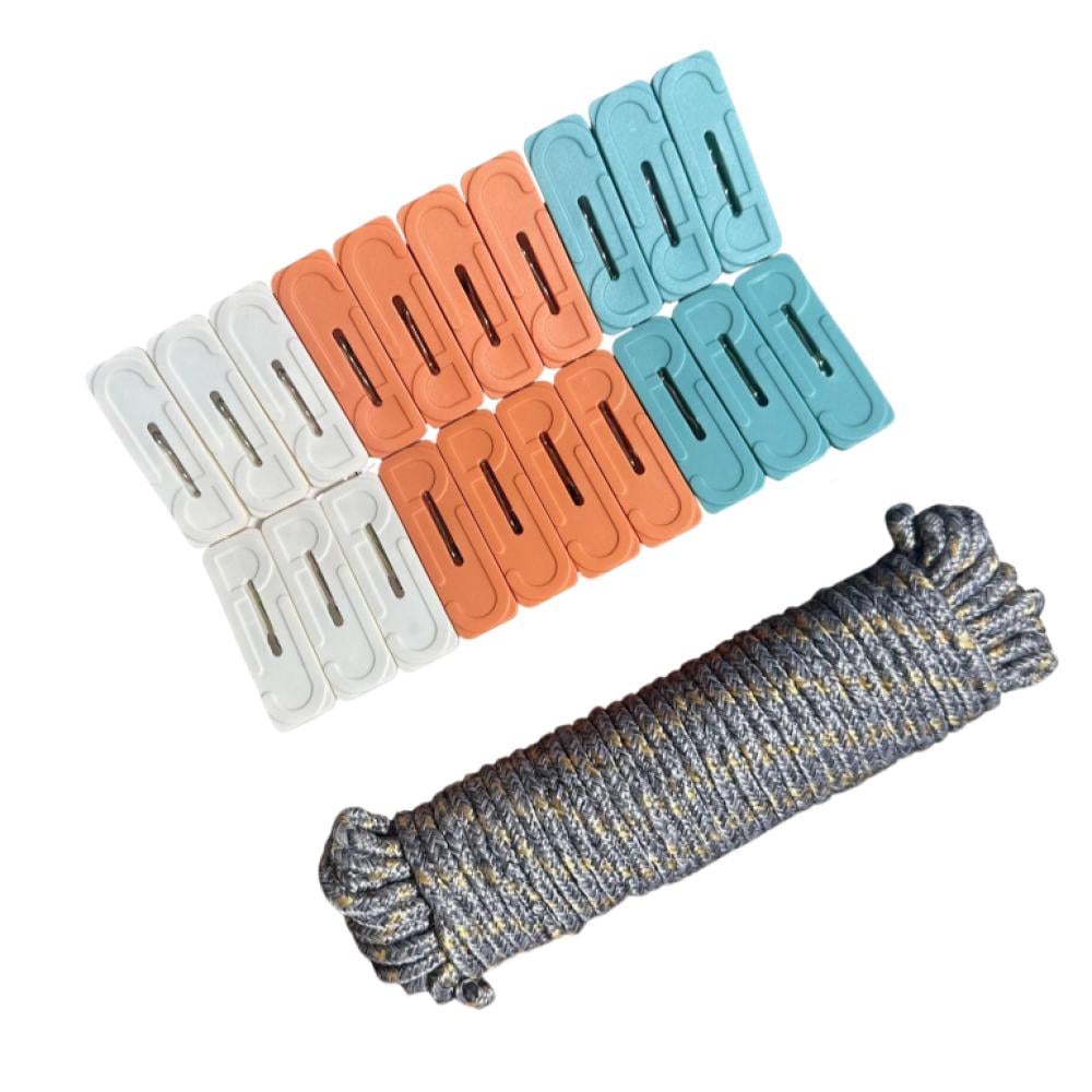 طقم عملي يحتوي على حبل غسيل قوي مع مجموعة مشابك ملونة، يوفر لك حلاً مثالياً لتعليق الملابس في المنزل أو أثناء الرحلات، سهل الاستخدام ومتين لتحمل الاستخدام اليومي.