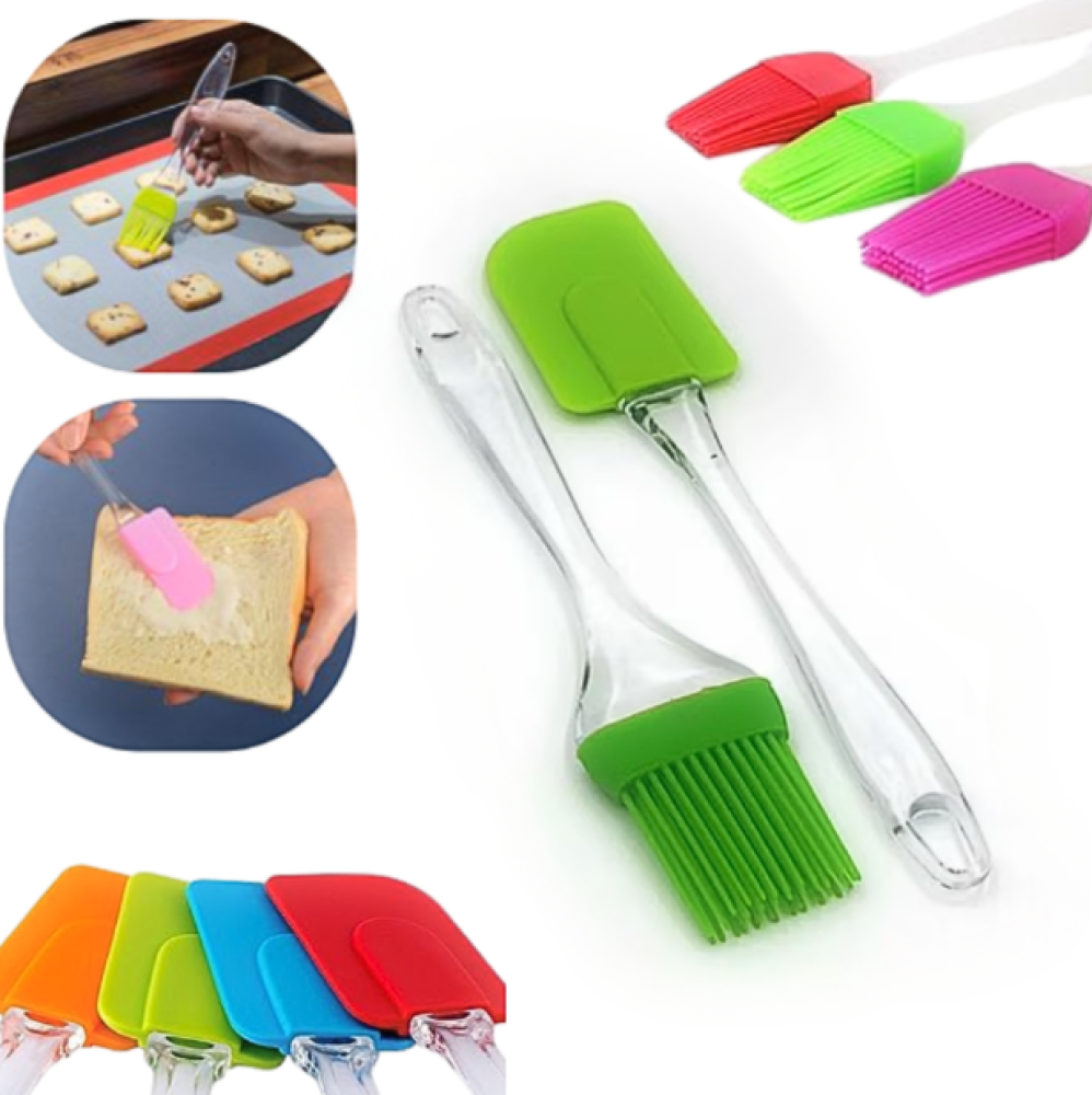 طقم أدوات مطبخ عملي مكون من فرشة سيليكون وملعقة مرنة مثالية للخبز والدهن والتحريك.