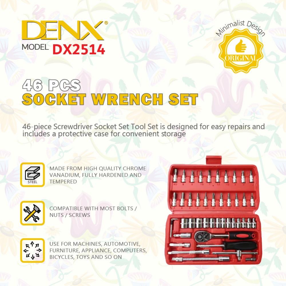 طقم مفاتيح سوكيت متعدد الاستخدامات من DENX يضم 46 قطعة أساسية لتسهيل جميع أعمال الصيانة والتركيب في المنزل أو الورشة. تصميم عملي مع حقيبة متينة لتخزين الأدوات وتنظيمها، ويوفر لك جودة اورجن وكفاءة عالية لكل احتياج.