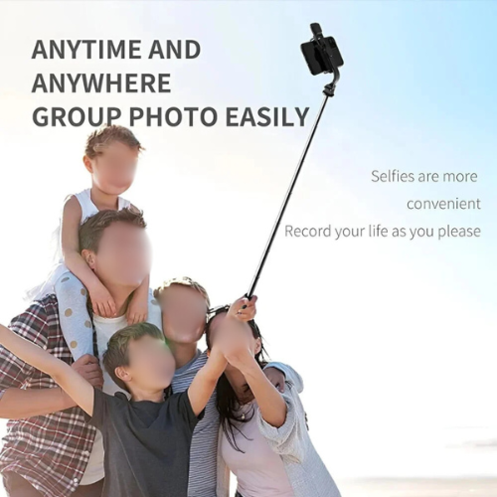 عصا سيلفي عملية تجمع بين عصا التقاط الصور وحامل ثلاثي القوائم مع ضوء إضاءة مدمج لتجربة تصوير احترافية. متوافقة مع أجهزة أندرويد وiOS، مزودة بجهاز تحكم عن بُعد لاسلكي لالتقاط الصور والفيديو بسهولة.