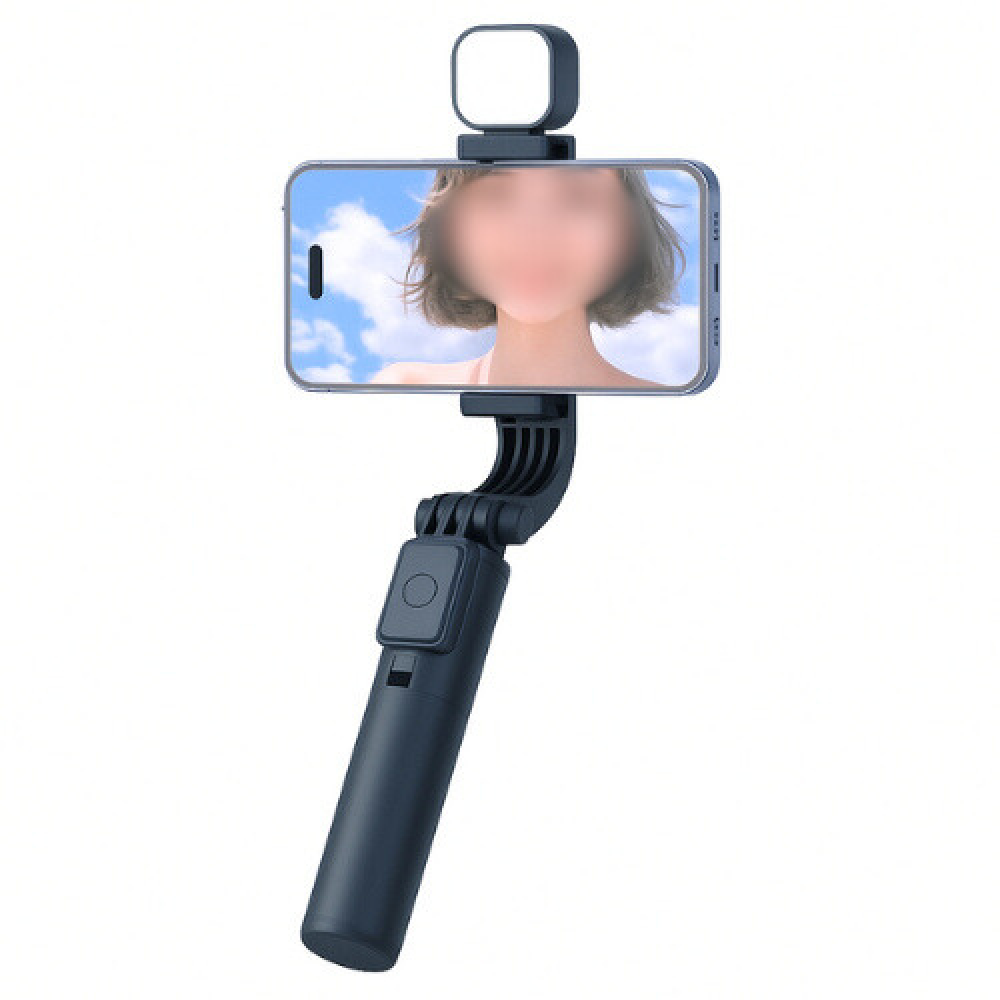 - تصميم 3 في 1: عصا سيلفي + حامل ثلاثي + ضوء إضاءة.