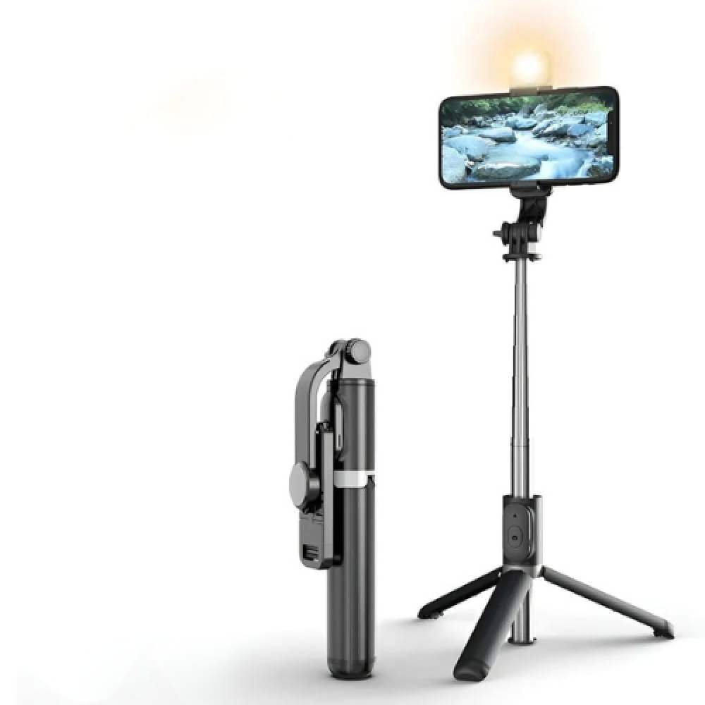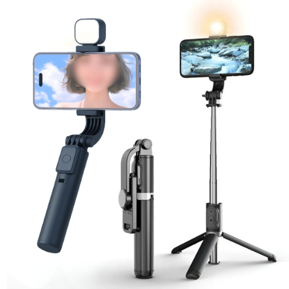 عصا سيلفي ثلاثية مع ضوء وحامل ثلاثي – جهاز تحكم لاسلكي
