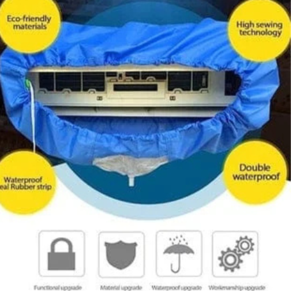 غطاء تنظيف عملي لمكيف الهواء مصمم لحماية الجدران والأرضيات من تسرب المياه أثناء عملية الغسيل. مصنوع من قماش مقاوم للماء وصديق للبيئة بتقنية مانعة للتسرب، مما يجعله مثاليًا لتنظيف مكيفات الجدار بسهولة وأمان. يتميز بخياطة متينة وشريط بولي يوريثان مانع للتسرب لضمان استخدام طويل الأمد.
