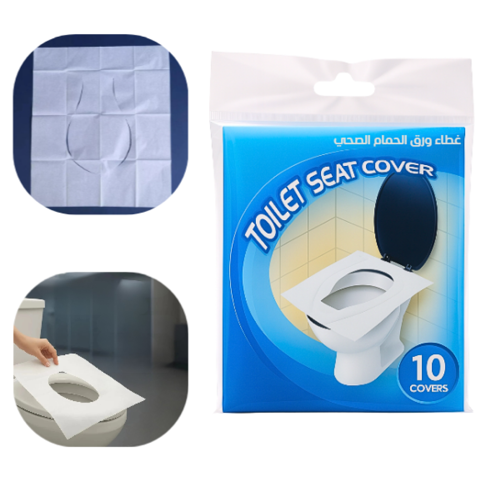 غطاء ورقي صحي لمقاعد الحمام يوفر حماية ونظافة شخصية عند استخدام الحمامات العامة.