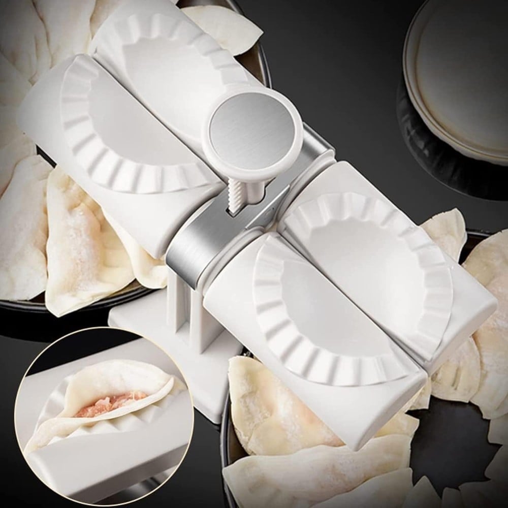 قالب صانع الزلابية الأوتوماتيكي برأس مزدوج منزلي، صانع فطائر من الفولاذ المقاوم للصدأ، صانع زلابية من درجة الطعام، اصنع فطائر إمباناداس بسرعة، يتضمن قاطع عجين على شكل غلاف زلابية