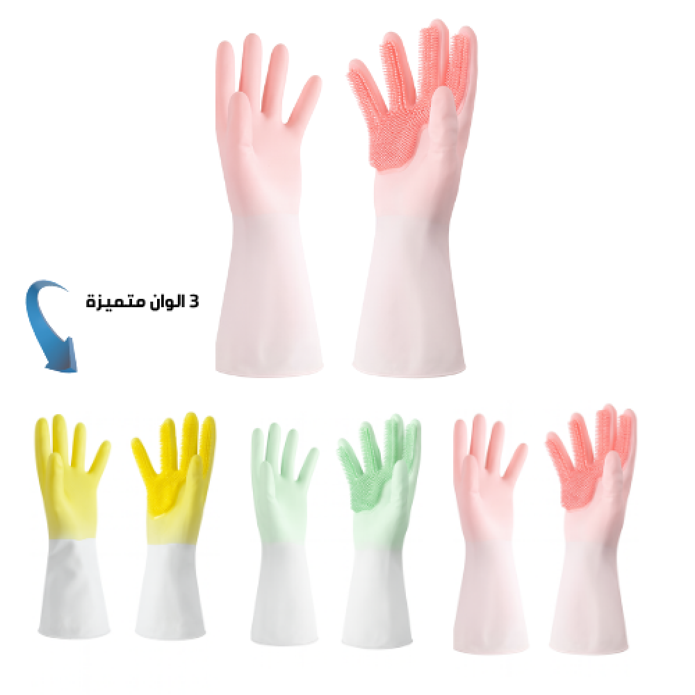 قفازات تنظيف سيليكون بأكمام طويلة – 3 ألوان مميزة م/ MC6757