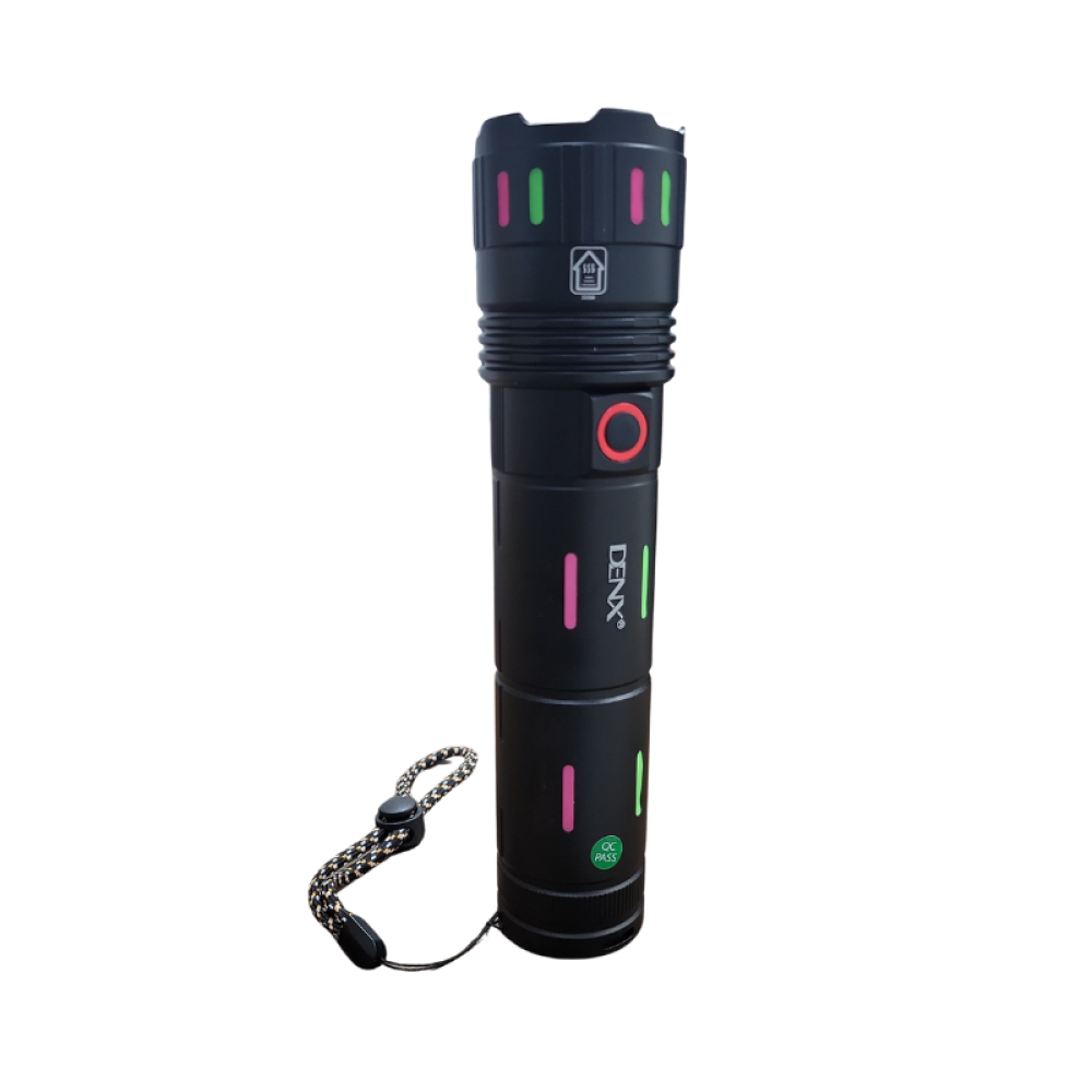 استمتع بإضاءة قوية وسهلة الحمل مع كشاف DENX اليدوي المصنوع من سبائك الألمنيوم م/ DX341. يتميز بسطوع عالي حتى 2000 لومن وبطارية بسعة 5400mAh قابلة للشحن عبر منفذ Type-C، مع قدرة تشغيل 20 واط. وقت استخدام يصل إلى 2.5 ساعة وشحن سريع خلال 2.5 ساعة. تصميم متين ومناسب للاستخدام اليومي، الرحلات، والطوارئ.