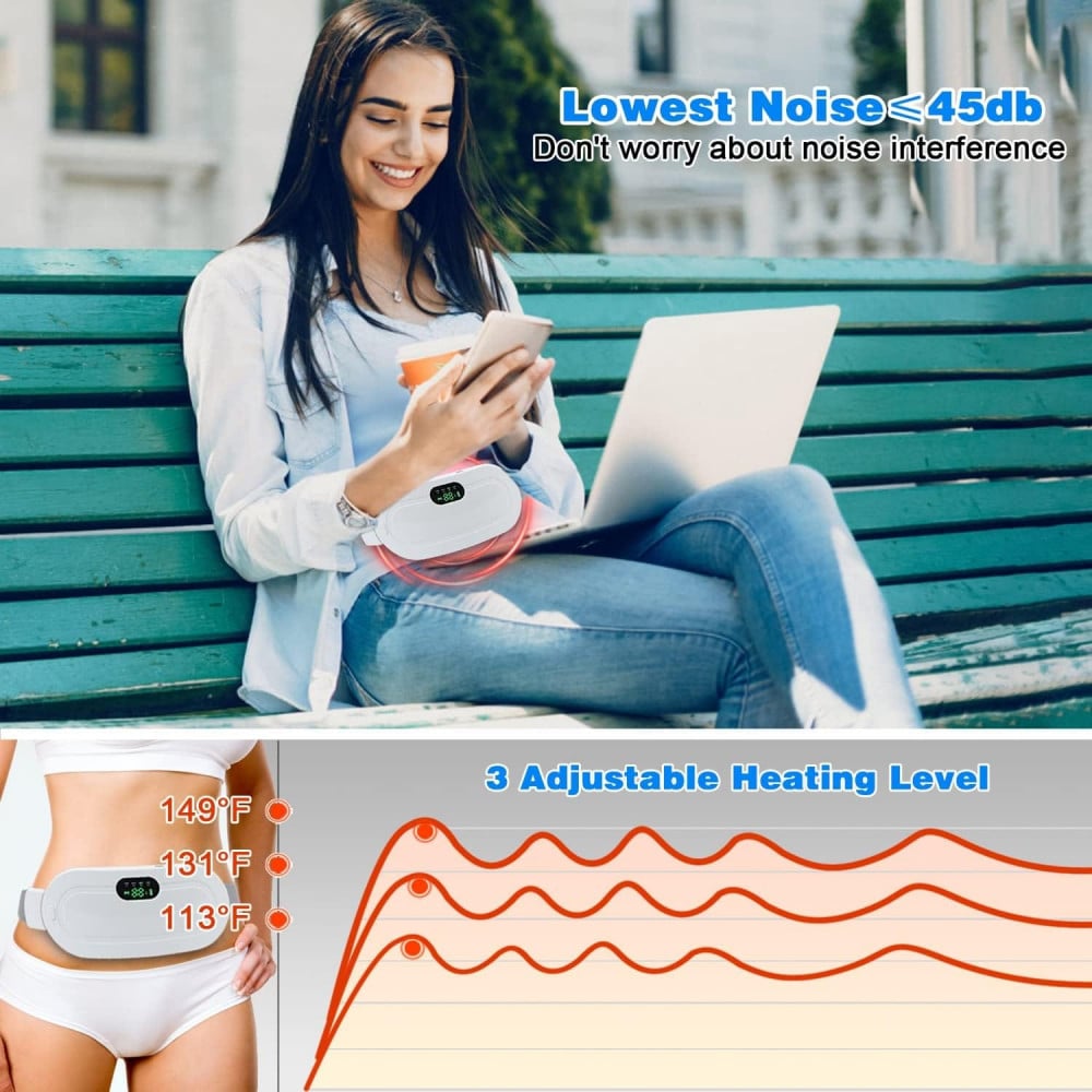 كمادة حرارية خالية من العقاقير ، وسهلة الاستخدام ، وتتميز ببطارية ليثيوم مدمجة ، وثلاثة مستويات حرارة تصل إلى 40 درجة مئوية، وثلاث سرعات للتدليك لمزيد من الراحة