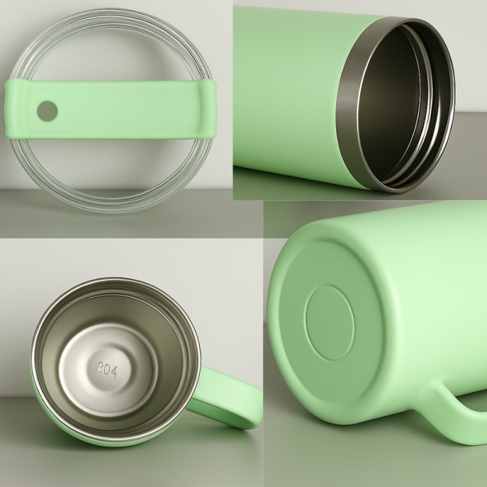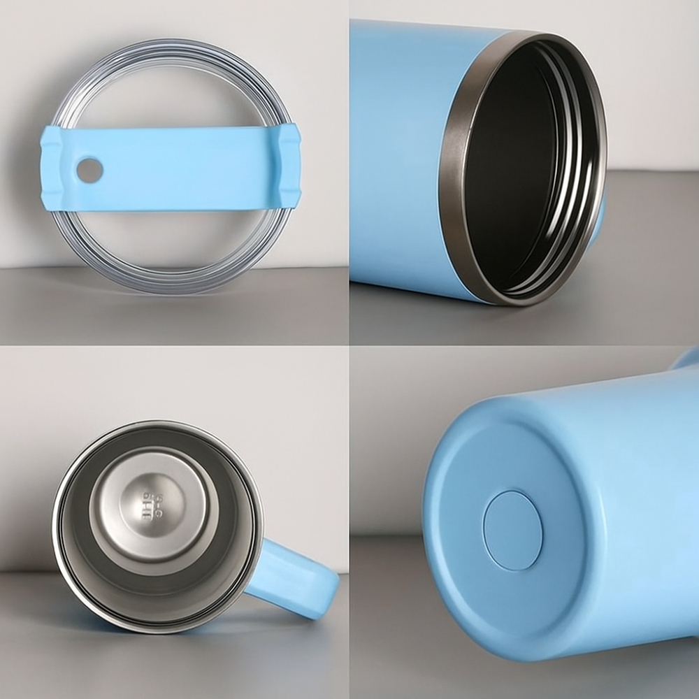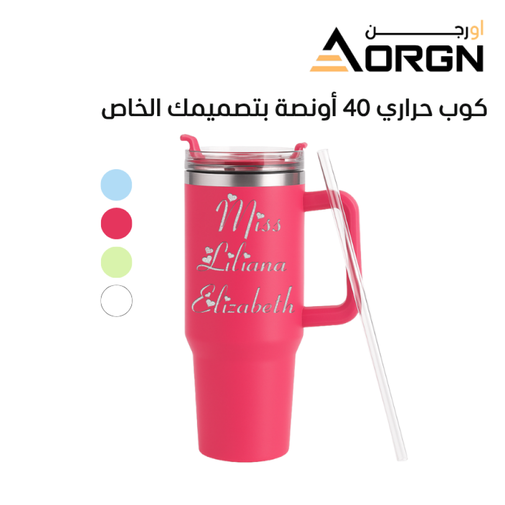 كوب حراري أنيق بسعة كبيرة 40 أونصة، يحافظ على المشروبات باردة أو ساخنة لفترات طويلة. مزود بغطاء محكم مع شفاط شفاف، ومقبض جانبي مريح للحمل. خيار مثالي للاستخدام اليومي أو كهدايا مميزة.