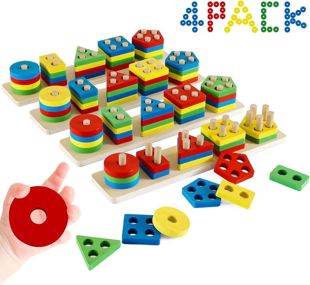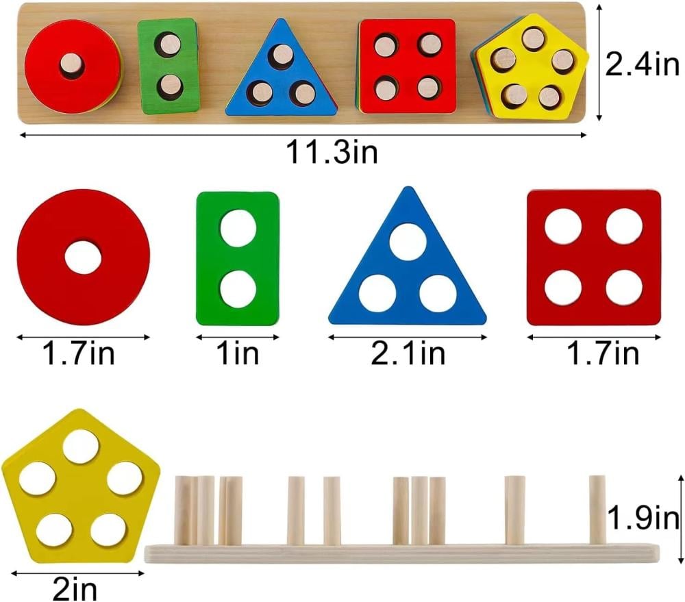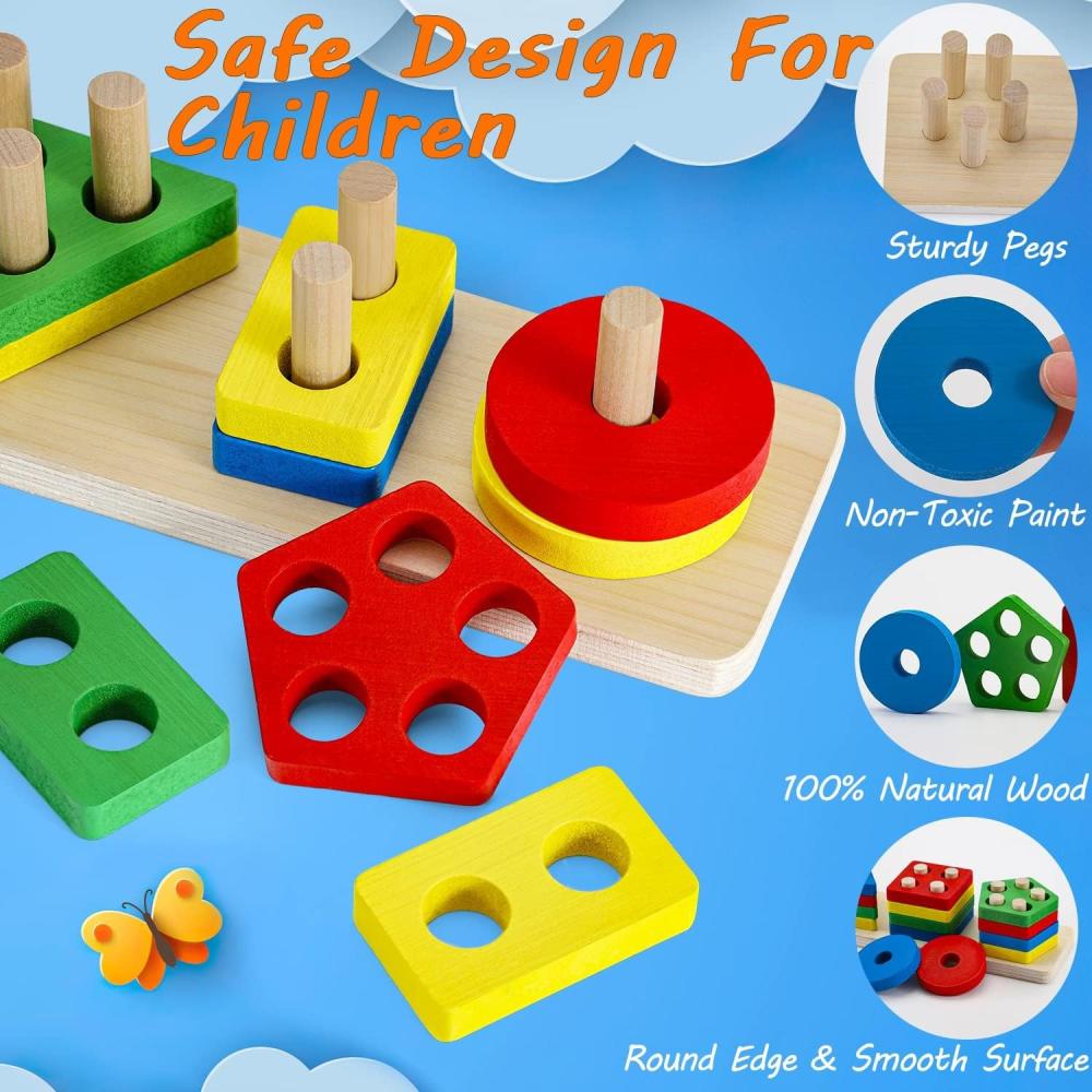 مجموعة تعليمية مكونة من أشكال هندسية خشبية تساعد الأطفال على التعرف على الأشكال والألوان، وتعزيز المهارات الحركية والتنسيق بين اليد والعين. مصممة لتحفيز التفكير المنطقي وتنمية الذكاء من خلال التركيب والتصنيف.
