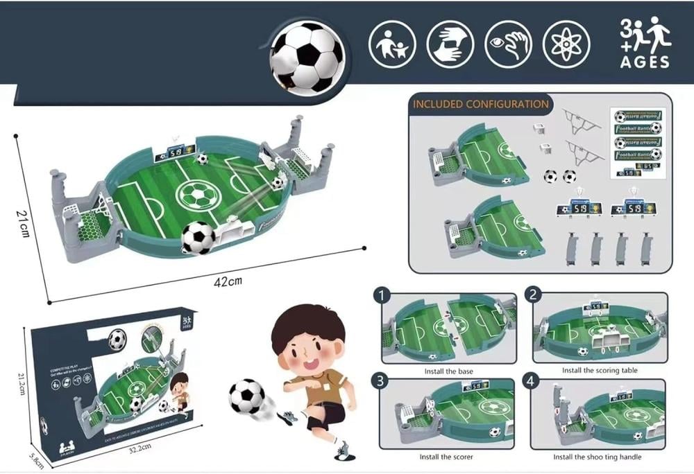 لعبة ترفيهية تجمع بين المتعة والتعليم، تتيح للأطفال تجربة لعب كرة القدم بشكل تفاعلي وتطوير مهاراتهم اليدوية والاجتماعية من خلال اللعب الجماعي.