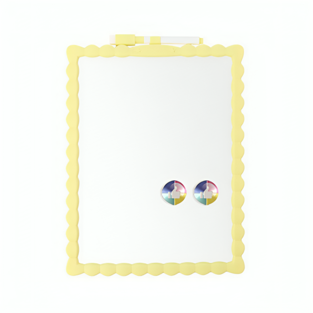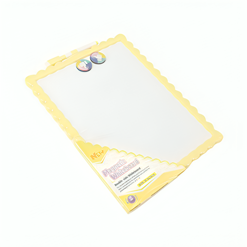 لوح كتابة أبيض عملي مزوّد بقلم قابل للمسح، مثالي لتدوين الملاحظات أو تعليم الأطفال بطريقة ممتعة. يتميز بإطار ملون جذاب وخامة متينة تدوم طويلًا، مما يجعله خيارًا مناسبًا للاستخدام المنزلي أو المدرسي.