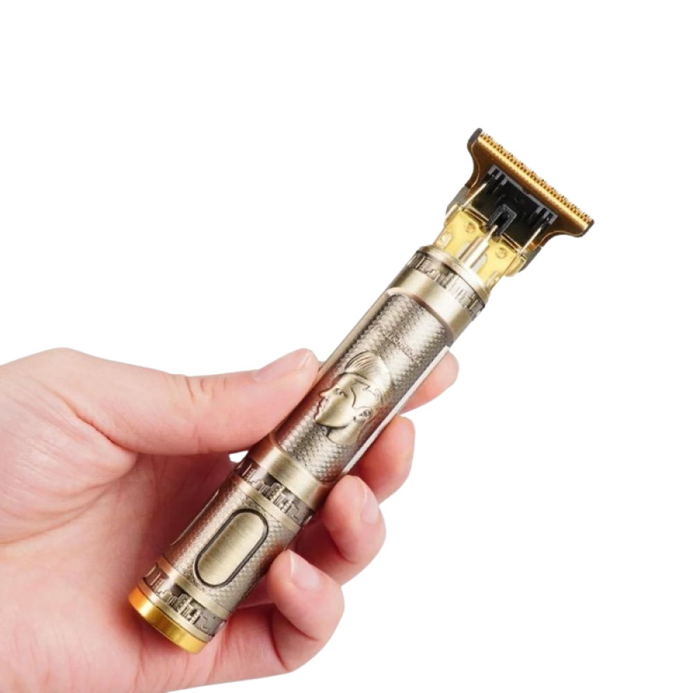 ماكينة متطورة بتصميم معدني أنيق ومحرك قوي، توفر أداءً دقيقًا لتحديد الحواف وتدرجات الشعر باحترافية عالية.