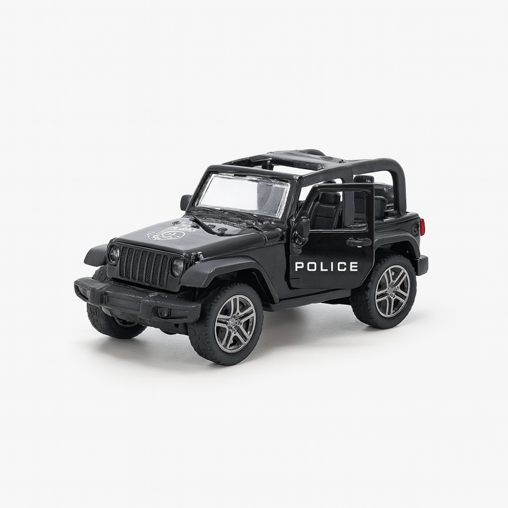 مجسم سيارة جيب رانجلر معدني بتصميم واقعي مستوحى من سيارات الدفع الرباعي، يتميز بتفاصيل دقيقة وجودة تصنيع عالية، مما يمنح تجربة عرض ممتعة لهواة المجسمات ويضفي لمسة من الحماس لعشاق السيارات القوية.