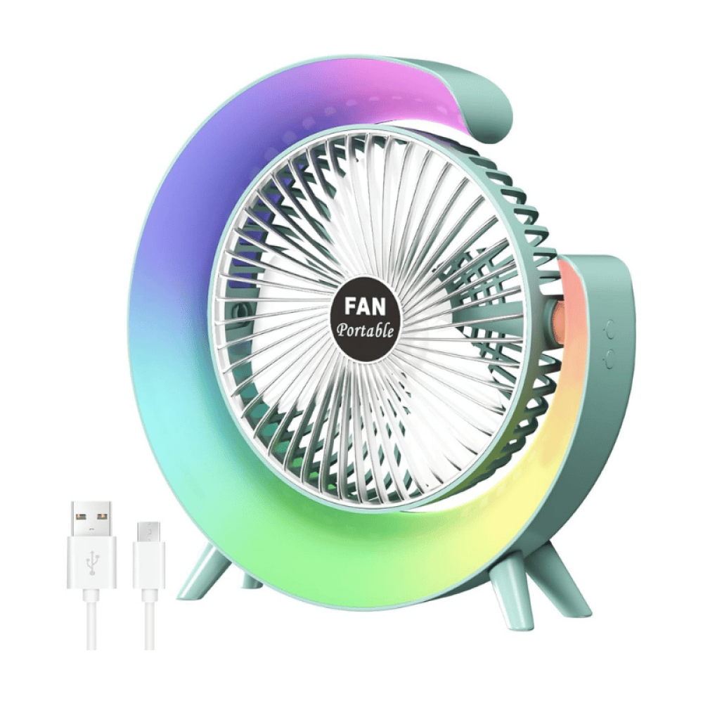 مروحة مكتب ملونة بتصميم عصري وأنيق، مزودة بأربع سرعات مختلفة لتوفير تدفق هواء مناسب حسب رغبتك. توفر أداءً هادئًا مع إضاءة LED تضفي لمسة جمالية على المكان، مثالية للمكتب أو غرفة النوم.
