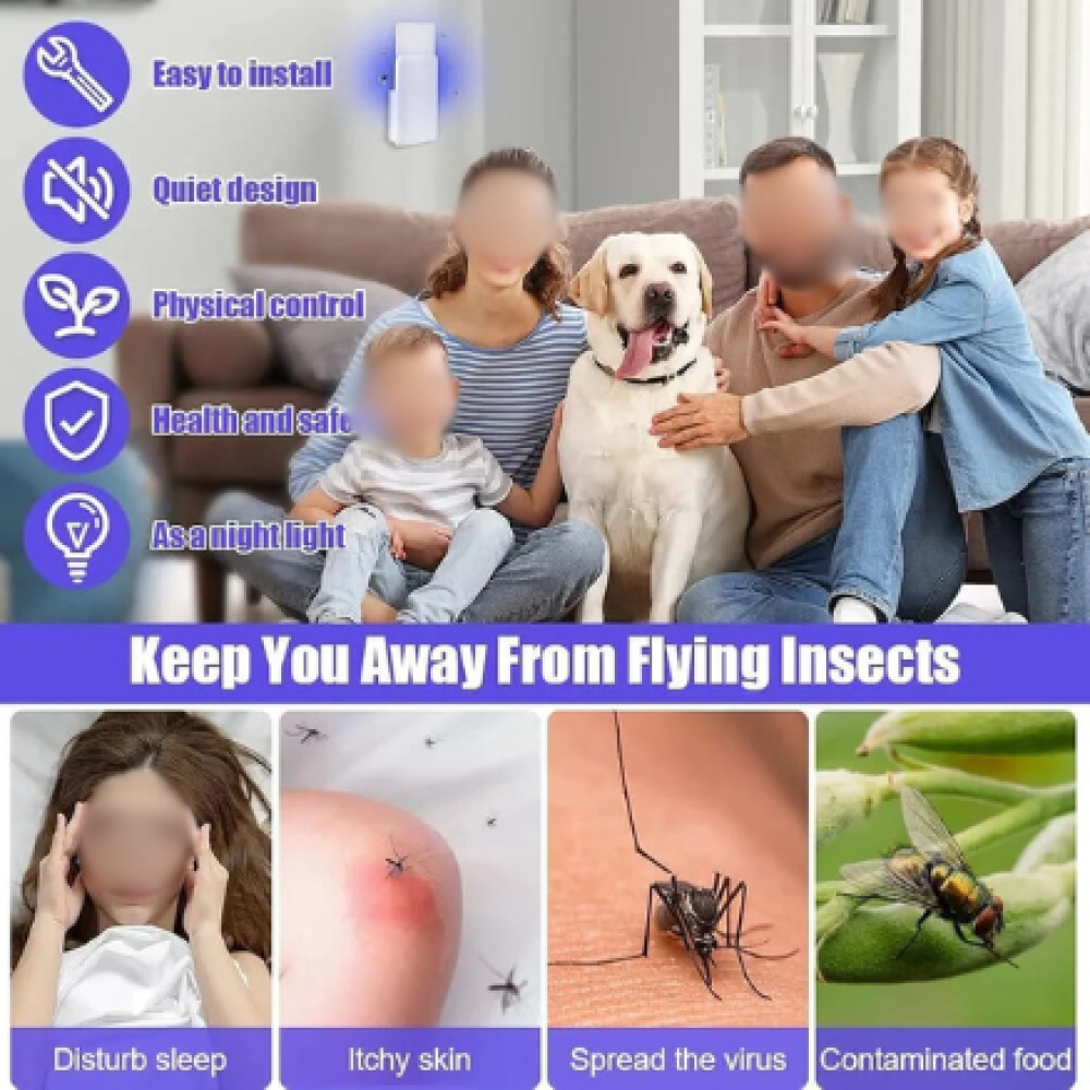مصباح طارد للحشرات بتقنية الأشعة فوق البنفسجية (UVA) يعمل على جذب البعوض والحشرات والتخلص منها بطريقة آمنة وفعالة دون روائح أو إشعاع. مزود بألواح لاصقة لاصطياد الحشرات، ويجمع بين الضوء الليلي الهادئ والمظهر العصري المناسب لغرف النوم والمكاتب.