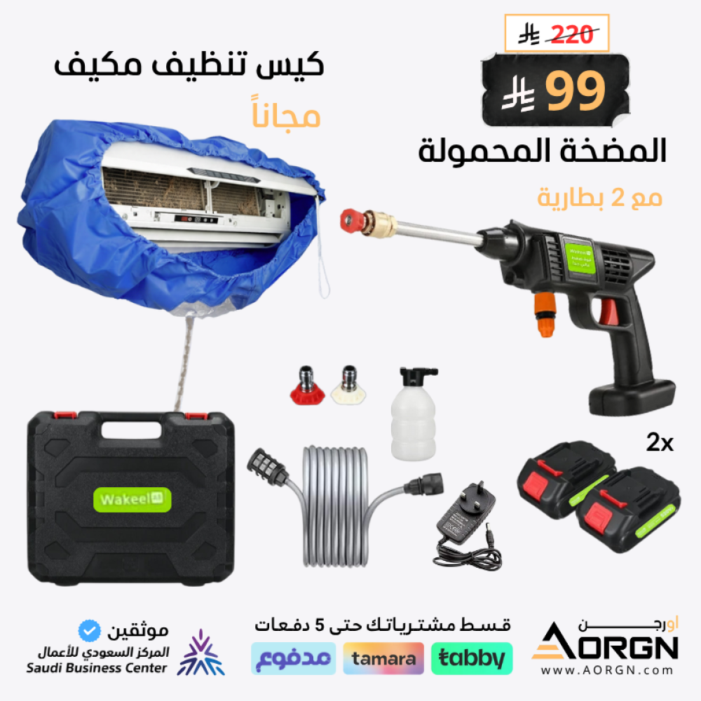 - 2 بطارية ليثيوم قابلة للشحن وتكفي لغسلة واحدة للسيارة تقريباً.
