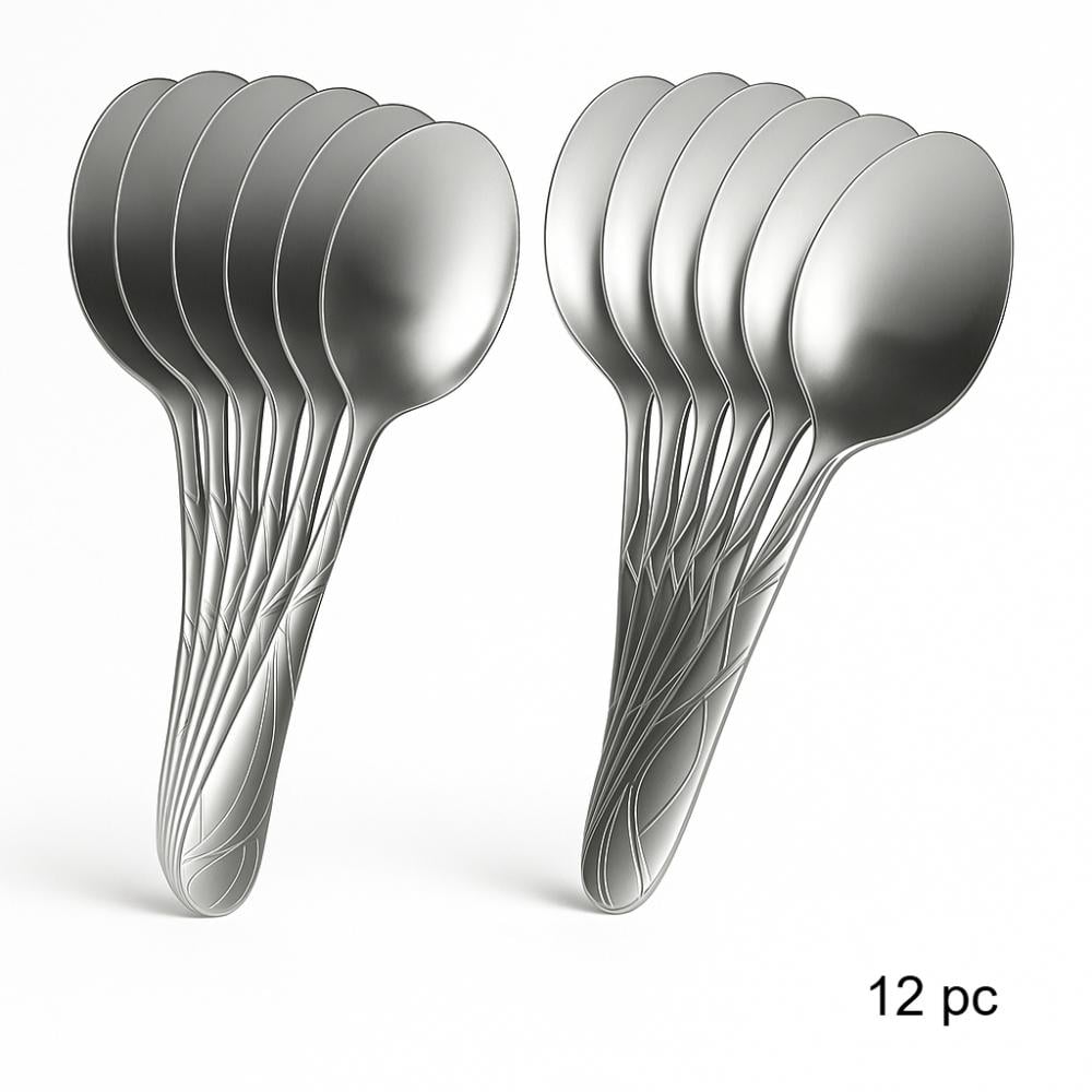 طقم ملاعق طعام فاخر مصنوع من الستانلس ستيل عالي الجودة بتصميم أنيق ولمسة نهائية لامعة.