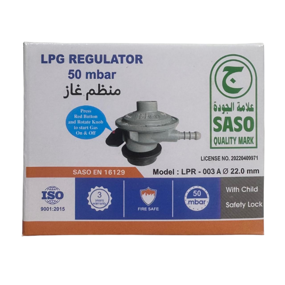 منظم غاز عالي الجودة مزود بتقنية أمان متقدمة لتنظيم تدفق الغاز من الأسطوانة، مثالي للاستخدام المنزلي مع مواصفات مطابقة لمعايير السلامة العالمية.