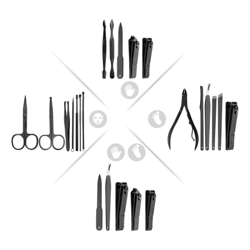 مجموعة متكاملة تضم 20 أداة متنوعة للعناية الشخصية، مصممة لتلبية جميع احتياجاتك اليومية من تشذيب وتقليم وتنظيف. تأتي في حقيبة أنيقة وعملية تسهل حملها وحفظها.