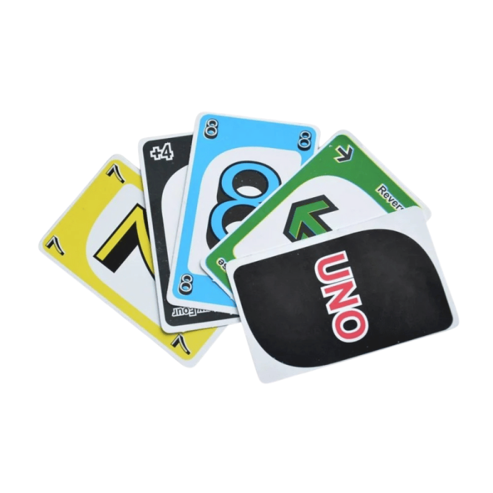 لعبة ورق أونو الأصلية، اللعبة العائلية الممتعة التي تجمع بين التسلية والذكاء. مثالية للعب مع الأصدقاء أو العائلة في أي وقت وأي مكان.
