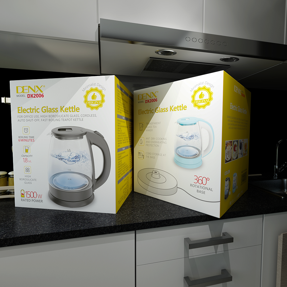 DENX - غلاية كهربائية زجاج سعة 8. 1 لتر 1500 واط م/DX2006 ماركة دينكس