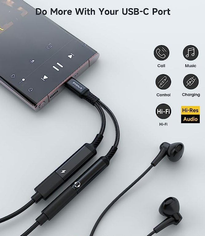 - يوفر لك منفذين للشحن والصوت من منفذ USB تايب سي واحد.