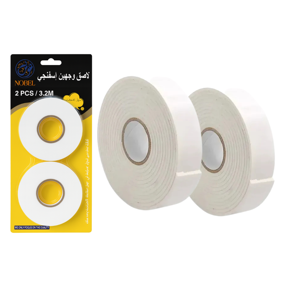 لاصق وجهين إسفنجي من NOBEL قوي ومتعدد الاستخدامات، مثالي لتثبيت الصور والديكورات على الجدران والأسطح المختلفة مثل الخشب، السيراميك، أو الدهان.
